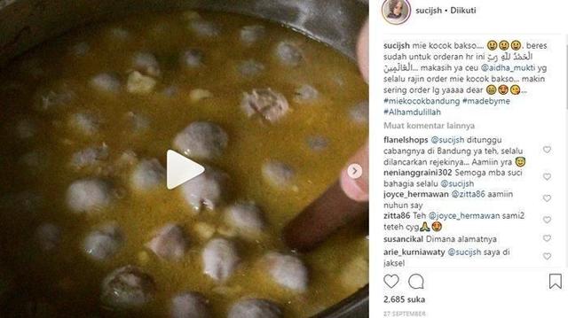 Seperti terlihat dari unggahannya, nampaknya bisnis bakso Suci lantaran hobinya yang memang gemar memakan bakso.