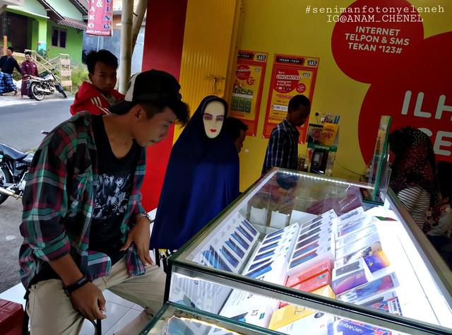 6. Baru jadi istri, si manekin sudah dibeliin hape nih.