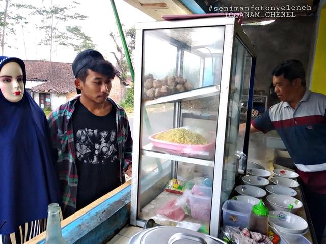 8. Cie terlihat mesra di warung bakso.