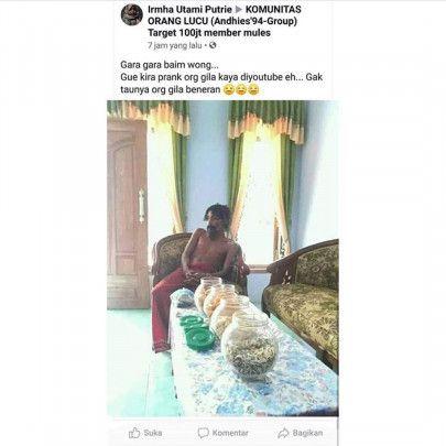 Seperti yang dialami oleh cewek bernama Irmha Utami Putrie ini. Kala itu, dia melihat orang gila di dekat rumahnya. Nah, dia berpikir kalau orang gila itu adalah YouTuber yang lagi ngeprank. Jadi, langsung aja deh dia ajak orang gila itu ke rumahnya dan disuguhi berbagai hidangan. Dia mungkin berharap akan dianggap sebagai orang baik nan tulus, sehingga akan viral dan diberikan hadiah.