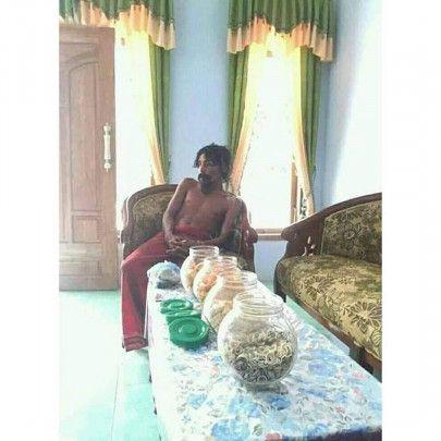 Dalam foto yang dia unggah, penampilan orang gila itu terlihat acak-acakan, memiliki janggut panjang dan tidak memakai baju. Dia terlihat duduk santai di ruang tamu Irmha sambil menikmati berbagai jenis cemilan yang tersedia. Sayang beribu sayang, ternyata orang gila ini bukanlah YouTuber yang pengen ngeprank. Yap, dia emang beneran orang gila biasa.